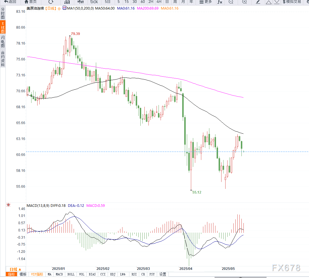 反之,如跌破60美元,则可能引发进一步技术性回调。整体来看,当前走势偏震荡整理,需关注宏观消息面对趋势的进一步指引。