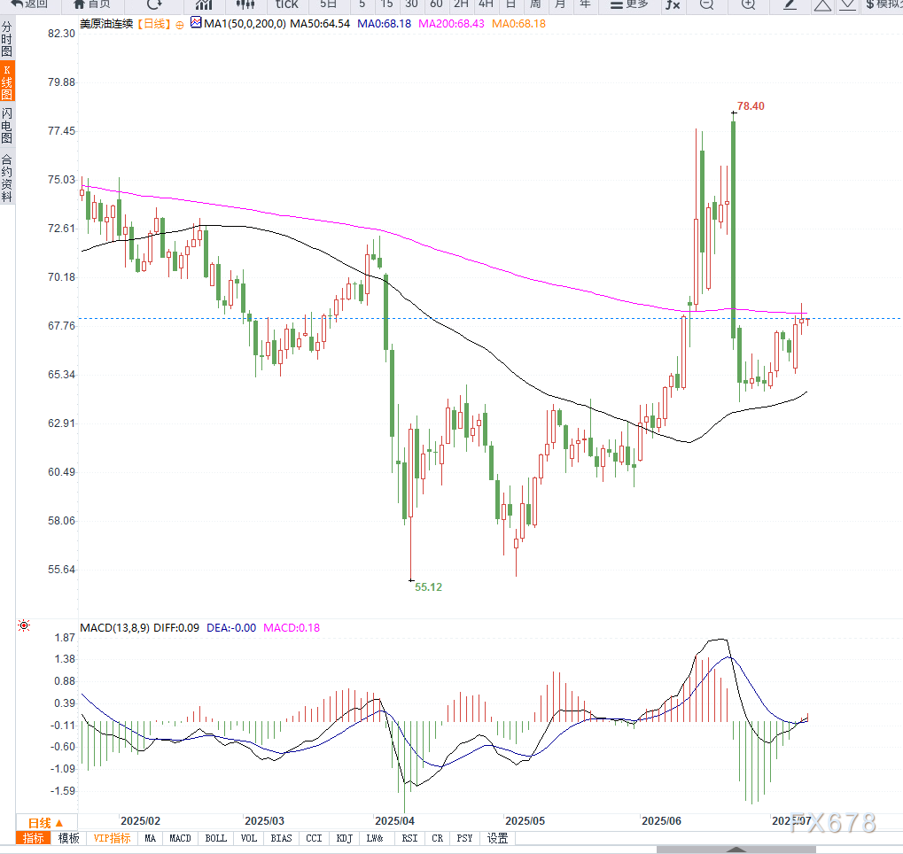 短期内油价波动区间可能维持在66.80至71.40美元之间,密切关注EIA官方库存报告以及8月1日前美国关税执行动态。