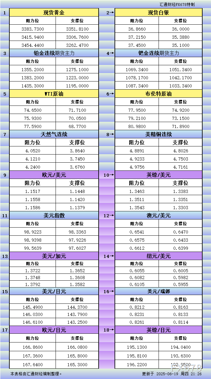 MH官网官网一张图看商品支撑阻力:金银油气+铂钯铜农产品期货(2025年6月20